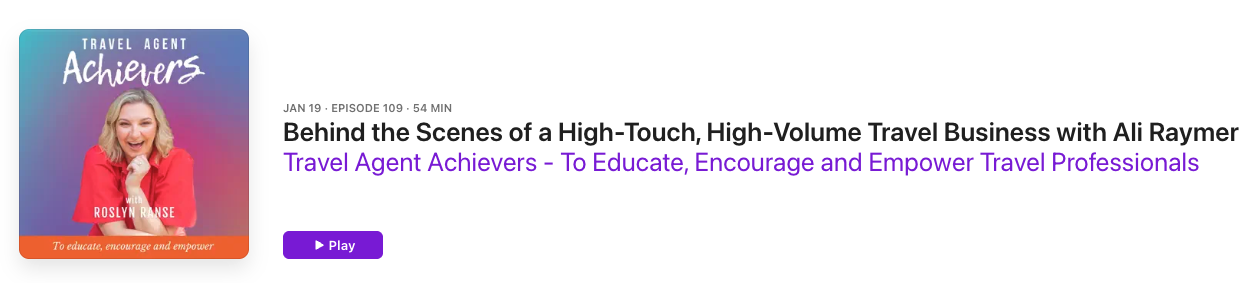 In this episode, Roslyn is joined by Ali Raymer, a senior travel advisor based in the US with Picture This Travel, for an honest, advisor-to-advisor conversation about what it really takes to deliver a personalised client experience while managing a high volume of bookings.